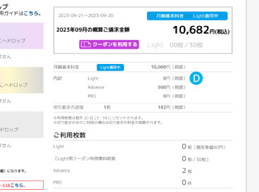 現在までのご利用履歴を確認できます。毎月20日23:59締めでリセットされますサービスについて