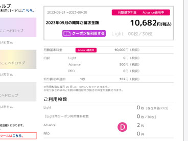 現在までのご利用履歴を確認できます。毎月20日23:59締めでリセットされます。サービスについて