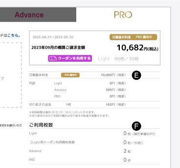 現在までの枚数のご利用状況を確認できます。毎月20日23:59締めでリセットされます[注文履歴]